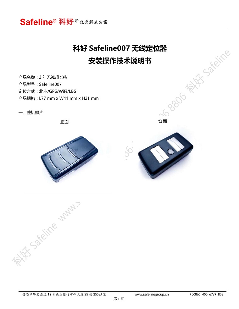 科好Safeline007无线定位器安装操作使用技术说明书
